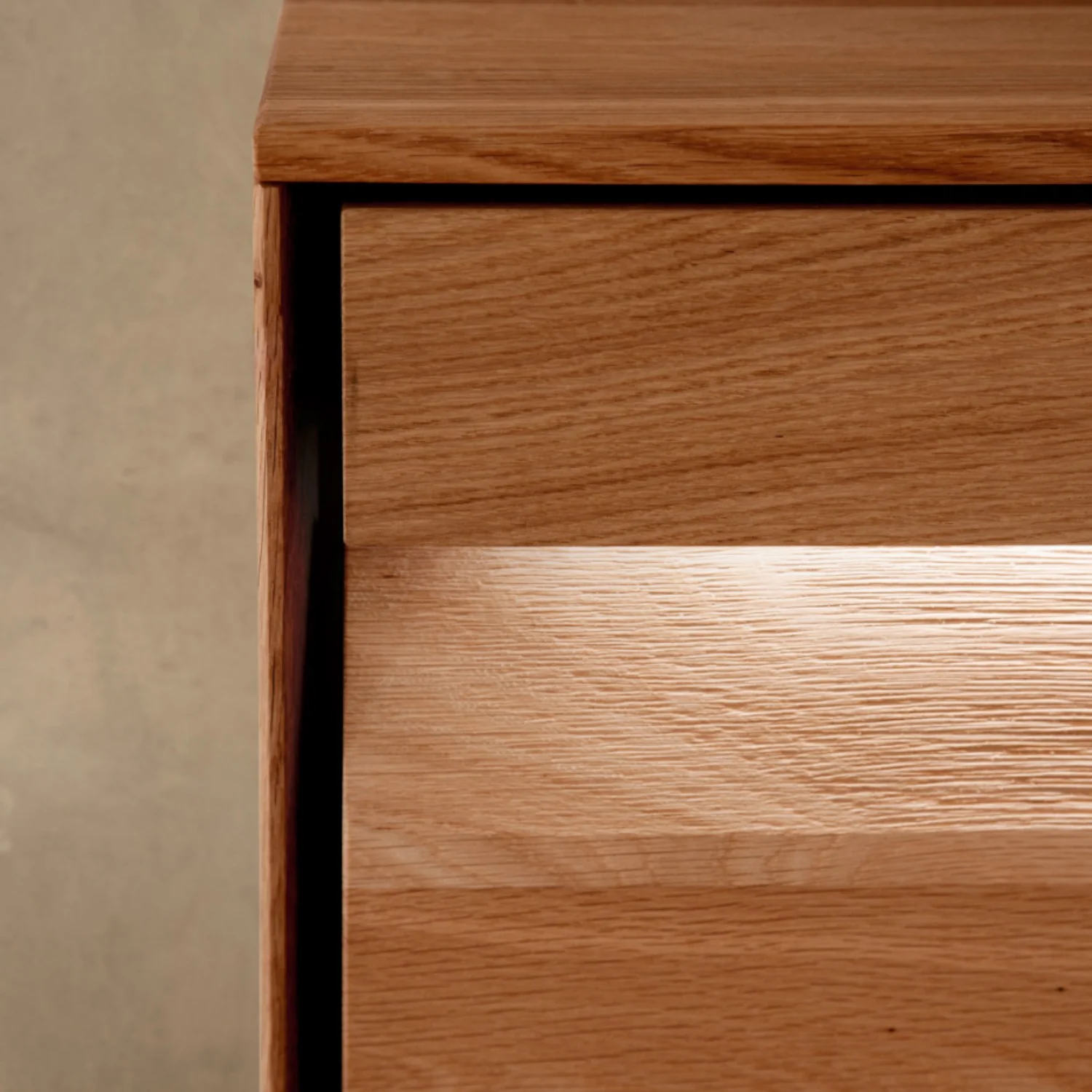 Gefertigt aus massiver Wildeiche im Roheffekt und geölt, bringt das Sideboard eine warme, natürliche Ausstrahlung in dein Zuhause. Die hochwertige Verarbeitung unterstreicht die erstklassige Qualität und sorgt für Langlebigkeit.