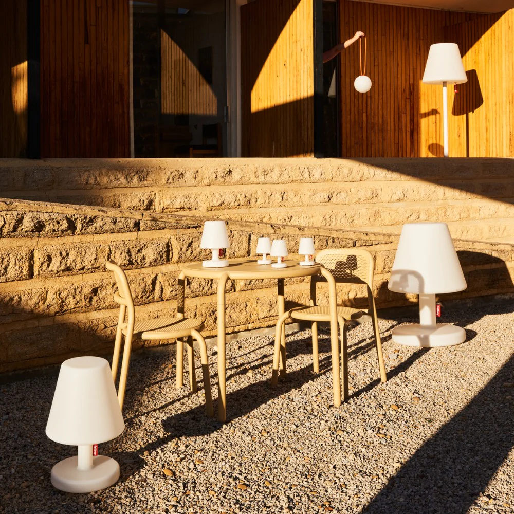 Erhältlich in mehreren Farben, fügt sie sich mühelos in verschiedenste Stilrichtungen ein, ob im Wohnbereich, auf der Terrasse oder im Garten. Mit einem Gewicht von ca. 18,5 kg bietet die Edison the Giant zudem eine außergewöhnliche Standfestigkeit, selbst bei windigen Bedingungen.