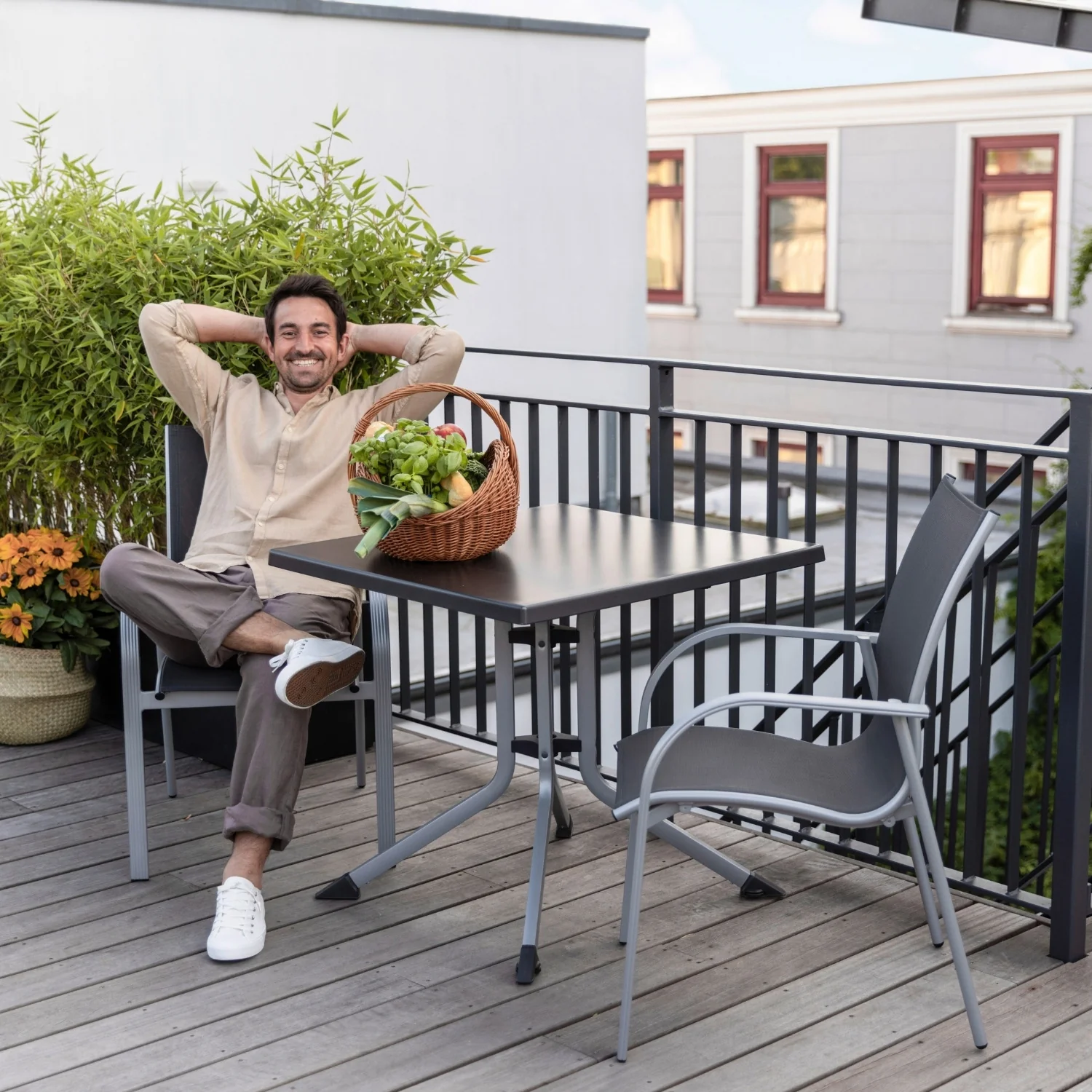 Der Tampa Stapelsessel ist aus wetterfestem Aluminium mit robustem Outdoor-Textilgewebe gefertigt, das nicht nur widerstandsfĂ€hig, sondern auch schnelltrocknend und luftdurchlĂ€ssig ist. Diese Premium-Materialien garantieren Langlebigkeit und angenehmen Sitzkomfort, selbst an heiĂen Sommertagen.