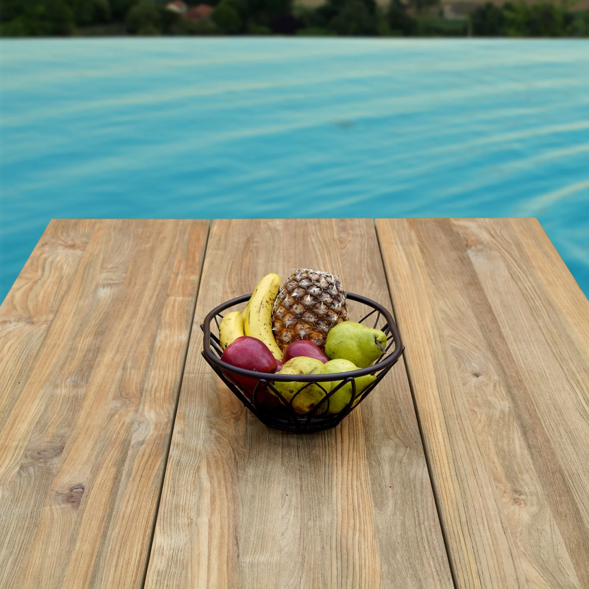 Die breiten Teakholzplanken harmonieren perfekt mit dem schmalen Gestell und schaffen eine Balance, die sowohl Stabilität als auch Leichtigkeit ausstrahlt. Die hochwertigen Materialien und die sorgfältige Verarbeitung garantieren Langlebigkeit und Widerstandsfähigkeit gegen die Elemente, damit Sie lange Freude an Ihrem neuen Gartentisch haben.