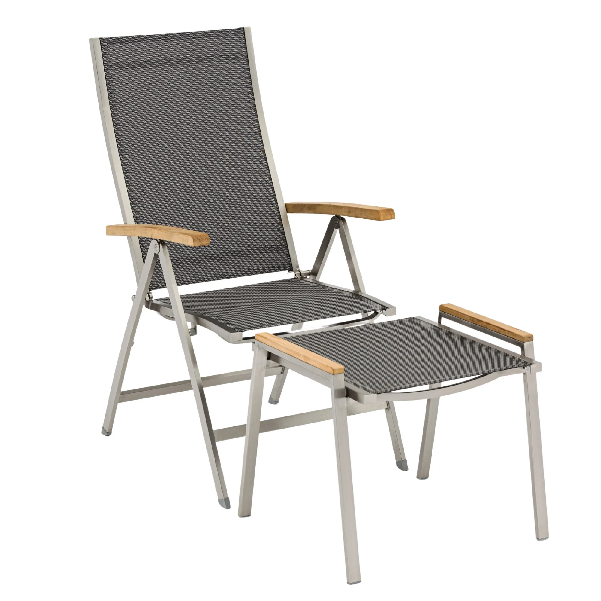 - Material: Edelstahlgestell mit hochwertigen Textilen und Teakholz-Akzenten